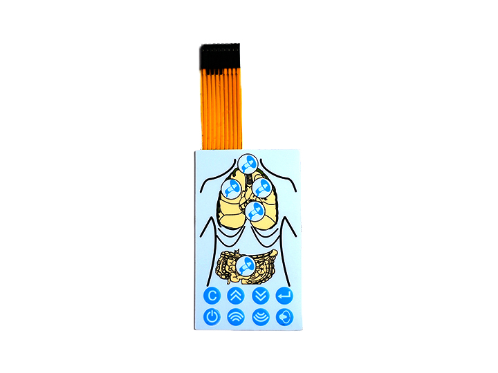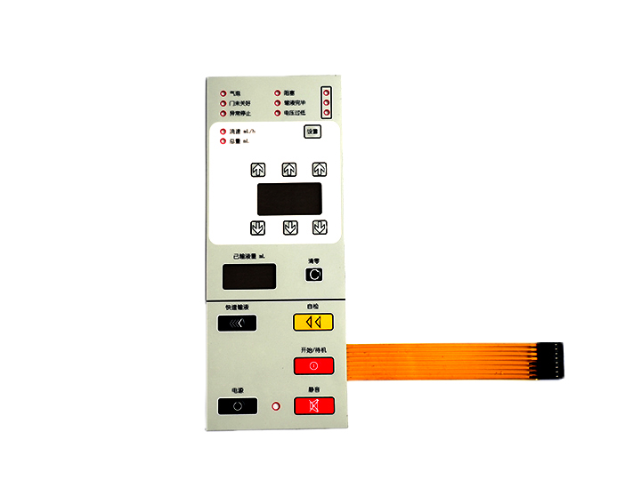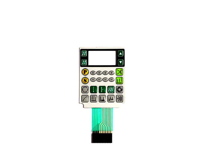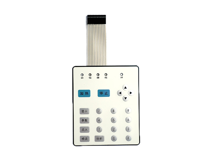 薄膜開(kāi)關(guān)又稱輕觸式鍵盤,采用平面多層組合而成的整體密封 結(jié)構(gòu)舉瞎。它是將按鍵開(kāi)關(guān)、面板、標(biāo)記、符號(hào)顯示···