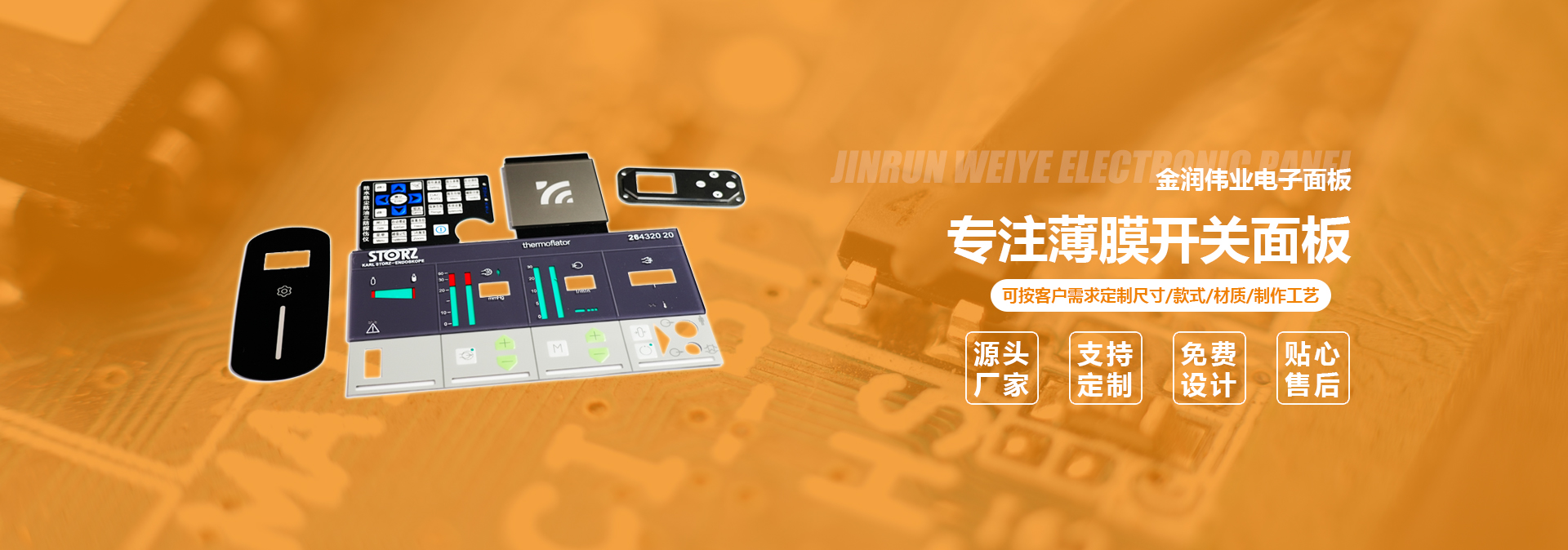 滄州金潤(rùn)偉業(yè)電子面板有限公司位于武術(shù)之鄉(xiāng)滄州北郊,公司始建于2004年是生產(chǎn)薄膜開(kāi)關(guān)、薄膜面板、儀器儀表、PET柔性線路、絲網(wǎng)印刷PC,PVC面板、不干膠標(biāo)簽、各種材質(zhì)標(biāo)盤的專業(yè)生產(chǎn)及銷售企業(yè)多年來(lái)公司專注于薄膜開(kāi)關(guān)面板的新工藝,新技術(shù)的研發(fā)與推廣,引進(jìn)了現(xiàn)代化的生產(chǎn)設(shè)備和先進(jìn)的檢測(cè)儀器,得到了廣大的用戶信任與認(rèn)可。本公司取得1SO9001認(rèn)證,環(huán)境體系認(rèn)證等其他權(quán)威認(rèn)證,品質(zhì)第一,服務(wù)至上,是我...